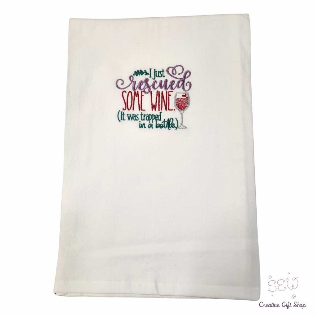 I just rescued some wine, it was trapped in a bottle Embroidered Towel
