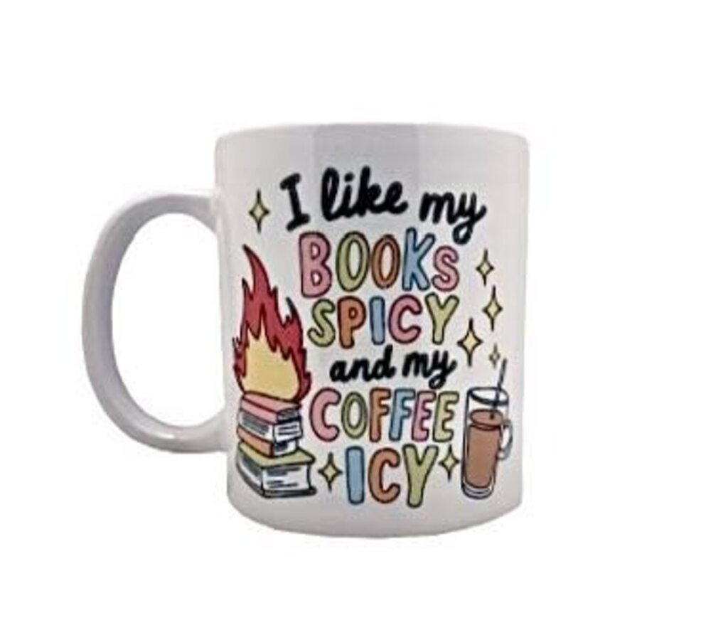 "I like my books spicy and my coffee icy" | 11 oz Ceramic Mug | PLEASE NOTE: may contain adult...