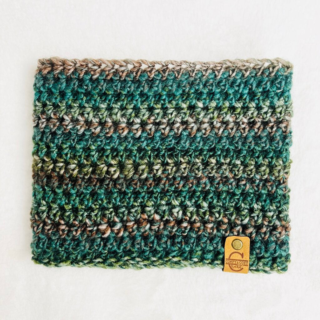 Infinity scarf made with acrylic yarn. Machine wash gentle (in mesh bag). Tumble dry low heat or lay flat to...