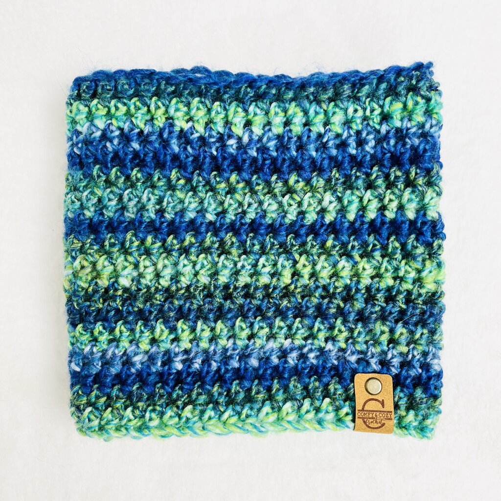 Infinity scarf made with acrylic yarn. Machine wash gentle (in mesh bag). Tumble dry low heat or lay flat to...