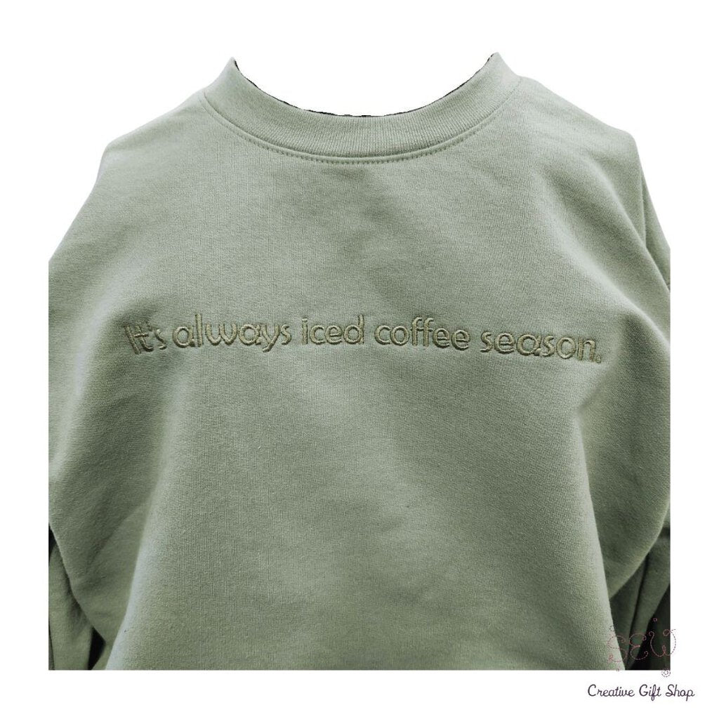 It's Always Iced Coffee Season. Embroidered Crewneck sweatshirt