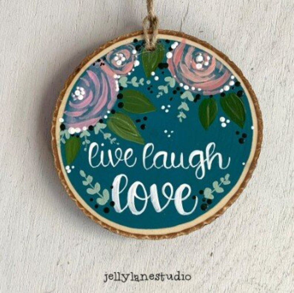 LIVE LAUGH LOVE ornament Jelly Lane Studio Share Deel Messenger Email LIVE LAUGH LOVE ornament Jelly Lane Studio Share Deel Messenger Email Product form This item is only available for in-store pickup. ORNAMENTS & HANGING DECOR handpainted on rustic woodslice Free pickup in store! Free pickup in store! Size 4" Colorblue Condition New $17.95 Quantity Add to cart