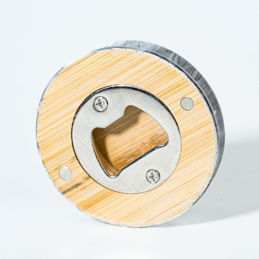 Magnetic Bamboo Bottle Opener - Black and white