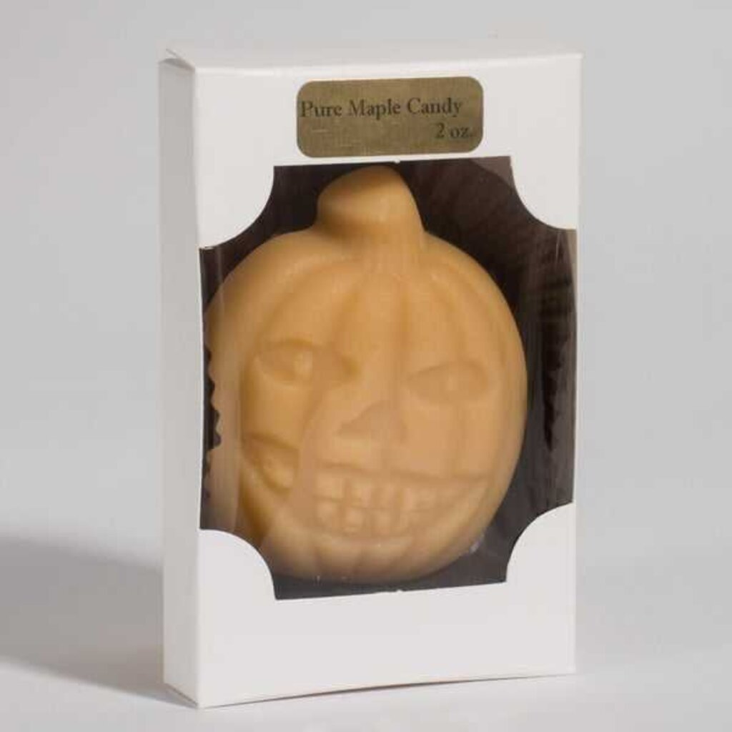 2 ounces of pure maple candy in the shape of a pumpkin. Made from syrup produced in Surry, NH.