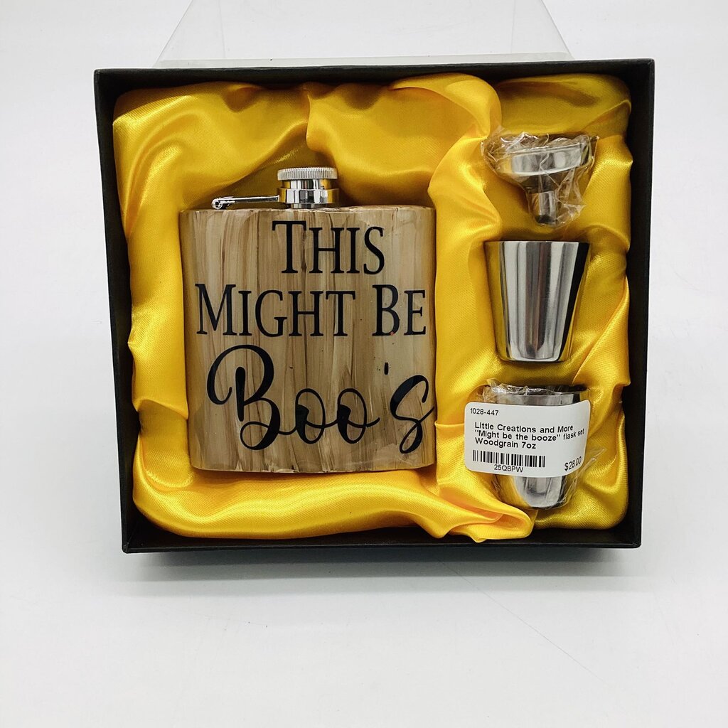 "Might be the booze" flask set Share Deel Messenger Email Product form Little Creations and More "Might be the booze" flask set Share Deel Messenger Email SHOT GLASSES | SKU: 25QBPW Free pickup in store! Free pickup in store! Size Free pickup in store! 7oz Color Free pickup in store! Woodgrain Condition Free pickup in store! New $28.00 Quantity Add to cart