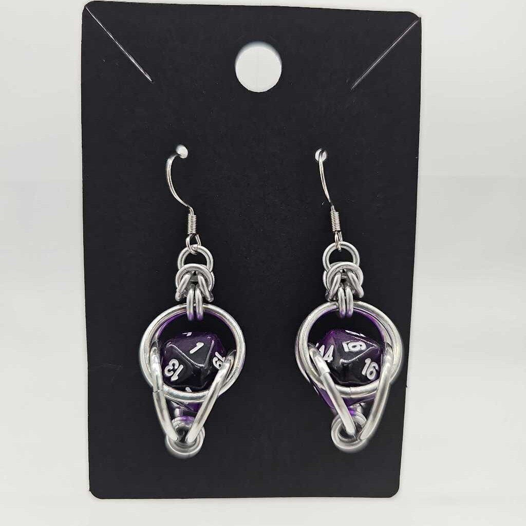 Mini D20 Earrings Silver with Translucent Dark Purple D20 Share Deel Messenger Email Product form Gray Cat Manor Designs Mini D20 Earrings Silver with Translucent Dark Purple D20 Share Deel Messenger Email EARRINGS | SKU: 2NHCYL Free pickup in store! Free pickup in store! Size Free pickup in store! 1.5 inches long, 1 inch wide Color Free pickup in store! silver, Dark purple Condition Free pickup in store! New $15.00 Quantity Add to cart