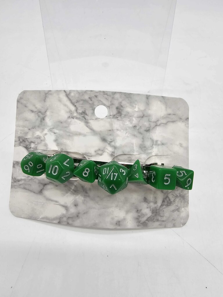 Mini Dice Barrette with Green Dice Share Deel Messenger Email Product form Gray Cat Manor Designs Mini Dice Barrette with Green Dice Share Deel Messenger Email HAIR ACCESSORIES | SKU: GS95RN Free pickup in store! Free pickup in store! Size Free pickup in store! 3 inch Color Free pickup in store! green Condition Free pickup in store! New $10.00 Quantity Add to cart