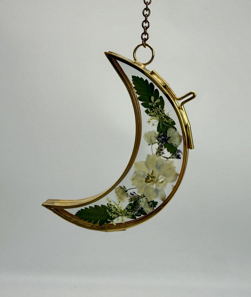 4" Gold frame w/ white & light blue floral center, baby's breath & greens