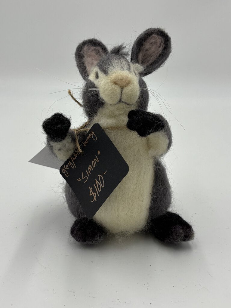 NEEDLE FELTED BUNNY GREY N WHITE SIMON