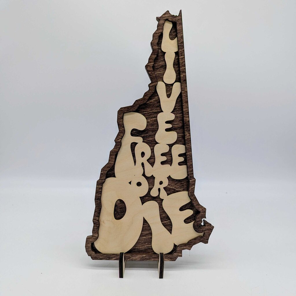 NH Live Free or Die Lu's Studio Laser Arts and Crafts Share Deel Messenger Email Low Stock NH Live Free or Die Lu's Studio Laser Arts and Crafts Share Deel Messenger Email Product form This item is only available for in-store pickup. DECORATIVE SIGNS & PLAQUES Laser cut 3 layers wood NH shape Free pickup in store! Free pickup in store! Size 15"x8" ColorDark wood and light wood Condition New $35.00 Quantity Add to cart