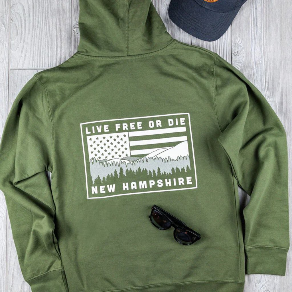 NH Mountains & USA Flag Hoodie - Military Green Granite State Apparel Share Deel Messenger Email NH Mountains & USA Flag Hoodie - Military Green Granite State Apparel Share Deel Messenger Email Product form SWEATSHIRTS & HOODIES - Sweatshirts | SKU: HVN3YW Size Free pickup in store! S / Military Green / New M / Military Green / New L / Military Green / New XL / Military Green / New 2XL / Military Green / New 3XL / Military Green / New Free pickup in store! Size Free pickup in store! S M L XL 2XL 3XL Color Free pickup in store! Military Green Condition Free pickup in store! New $45.00 Quantity Add to cart