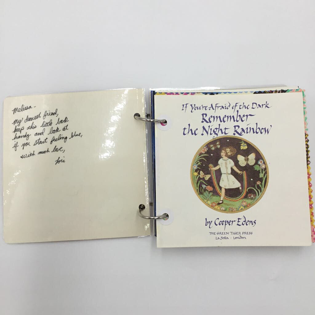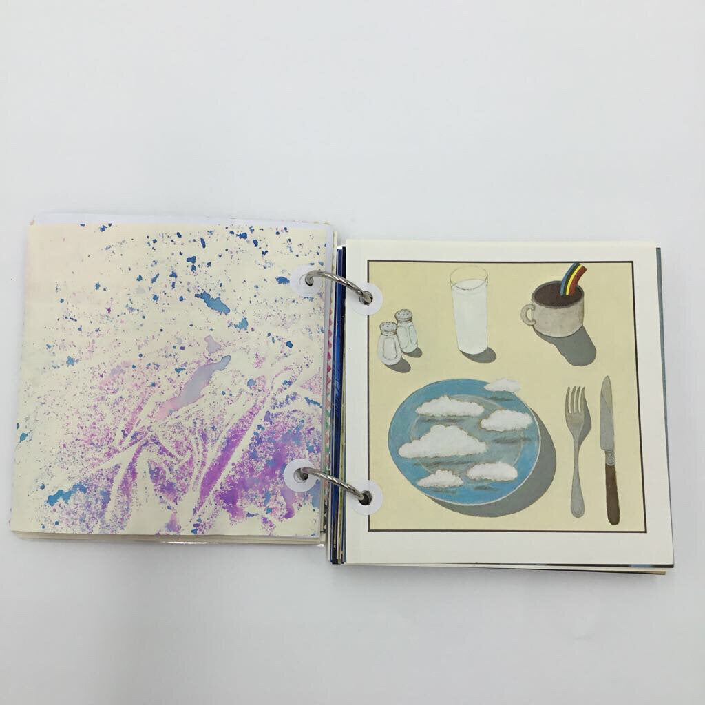 88 page altered book journal, 5.25" square with 2 ring binding. Hidden pockets, an envelope, hand dyed pages, vintage recipe,...