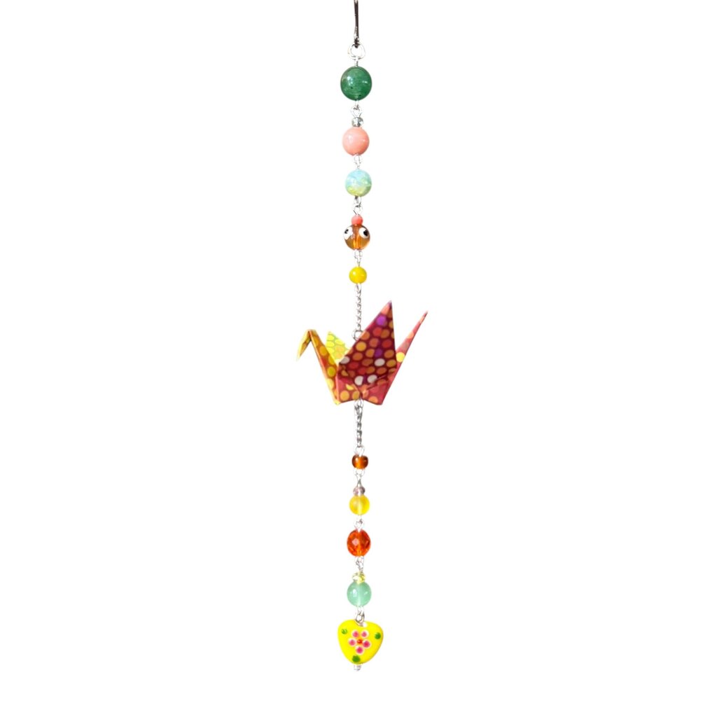 Unique ornament made with origami paper crane, beads, and salvaged jewelry. For decorative use only. Handcrafted in Laconia, NH.