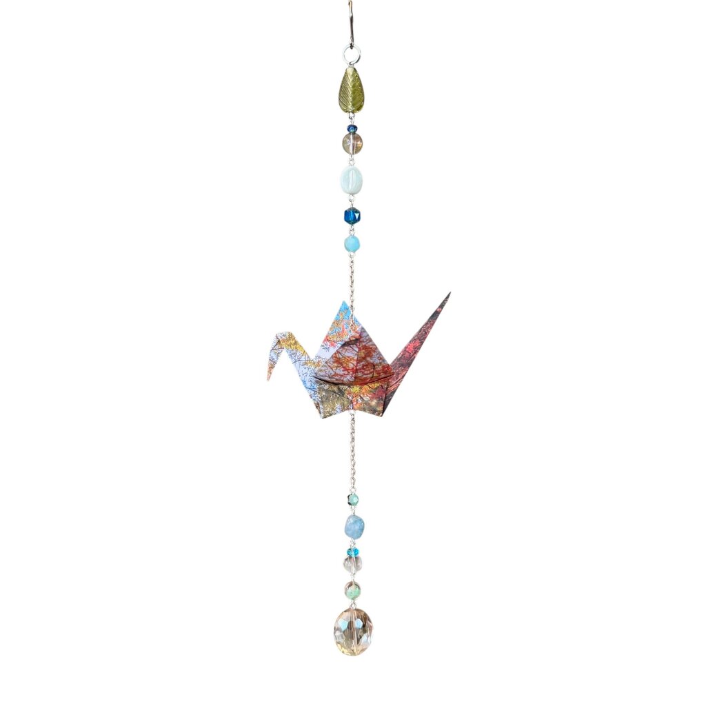 One-of-a-kind ornament made with an origami paper crane, beads, and salvaged jewelry. Handcrafted in Laconia, NH.