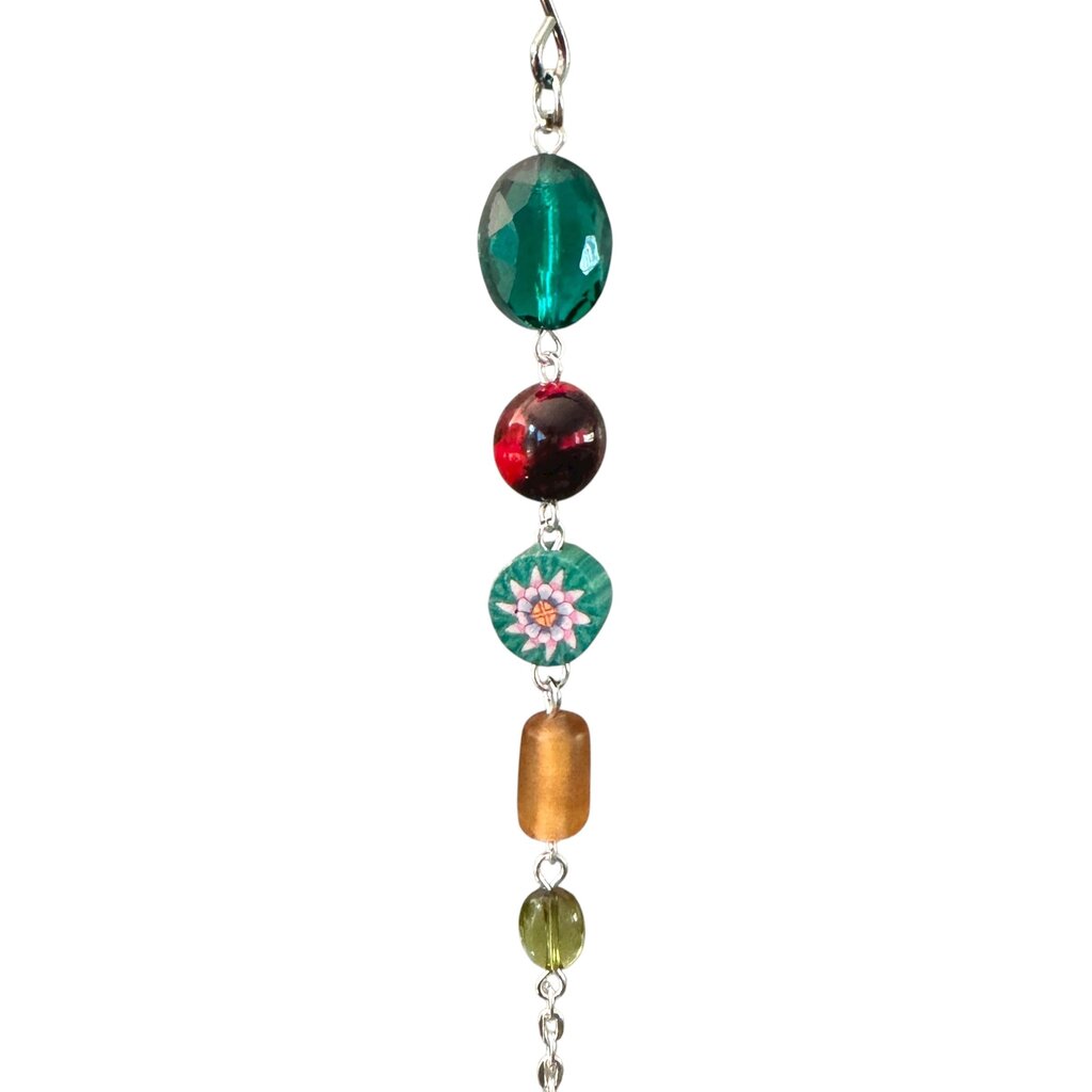 One-of-a-kind ornament made with an origami paper crane, beads, and salvaged jewelry. Handcrafted in Laconia, NH.
