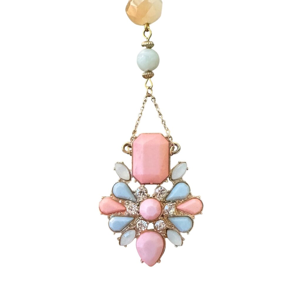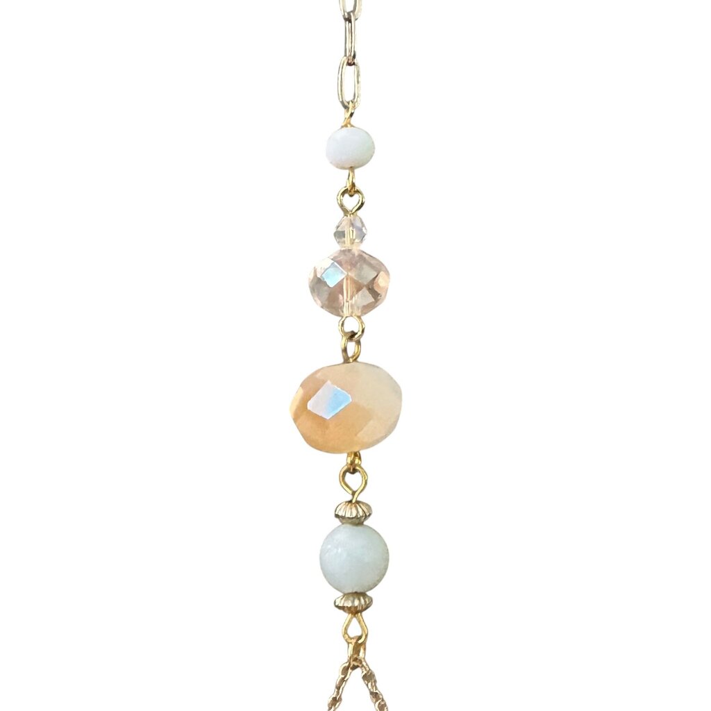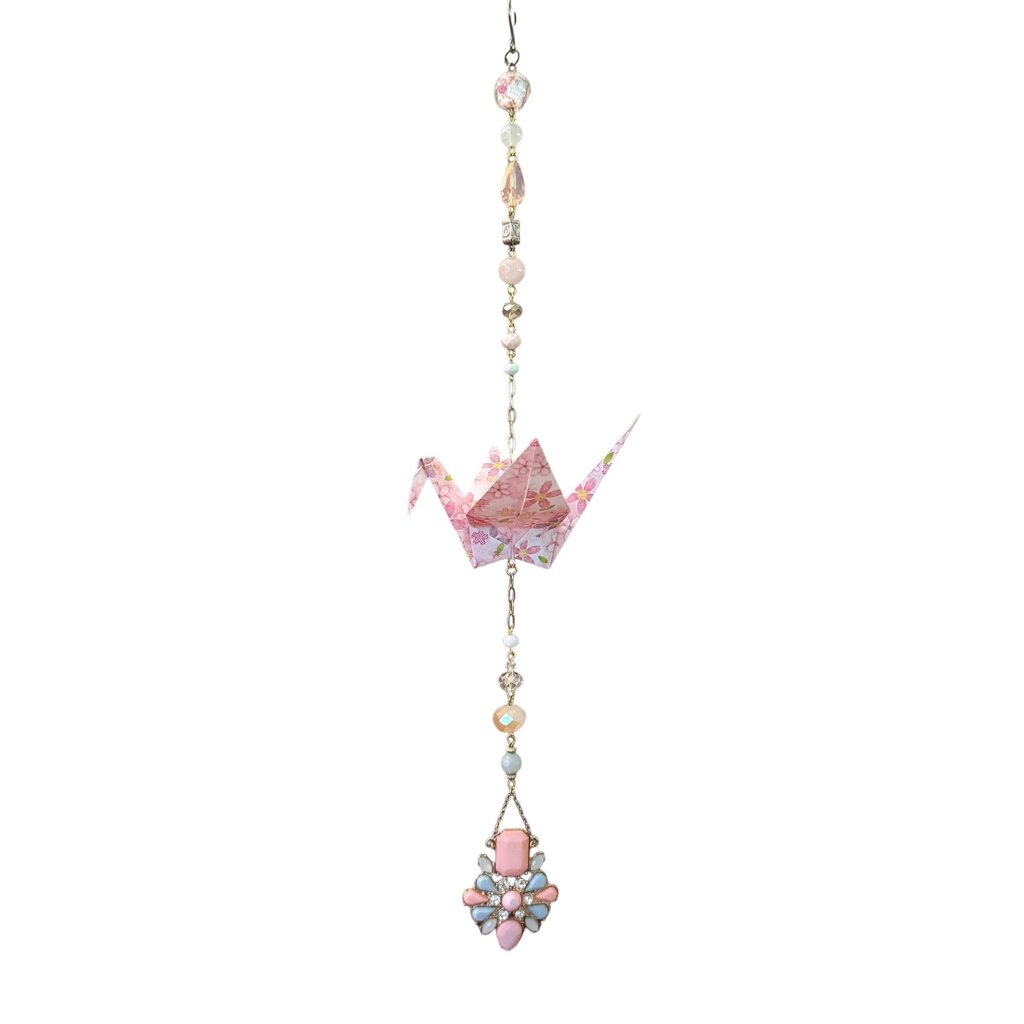 Unique ornament made with origami paper crane, beads, and salvaged jewelry. For decorative use only. Handcrafted in Laconia, NH.