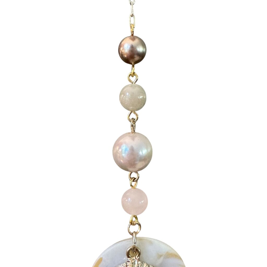 One-of-a-kind ornament made with folded origami, beads, and repurposed jewelry. Each ornament uses a mix of new and salvaged pieces....