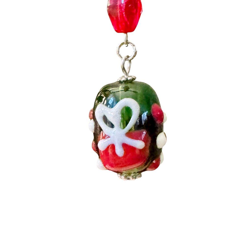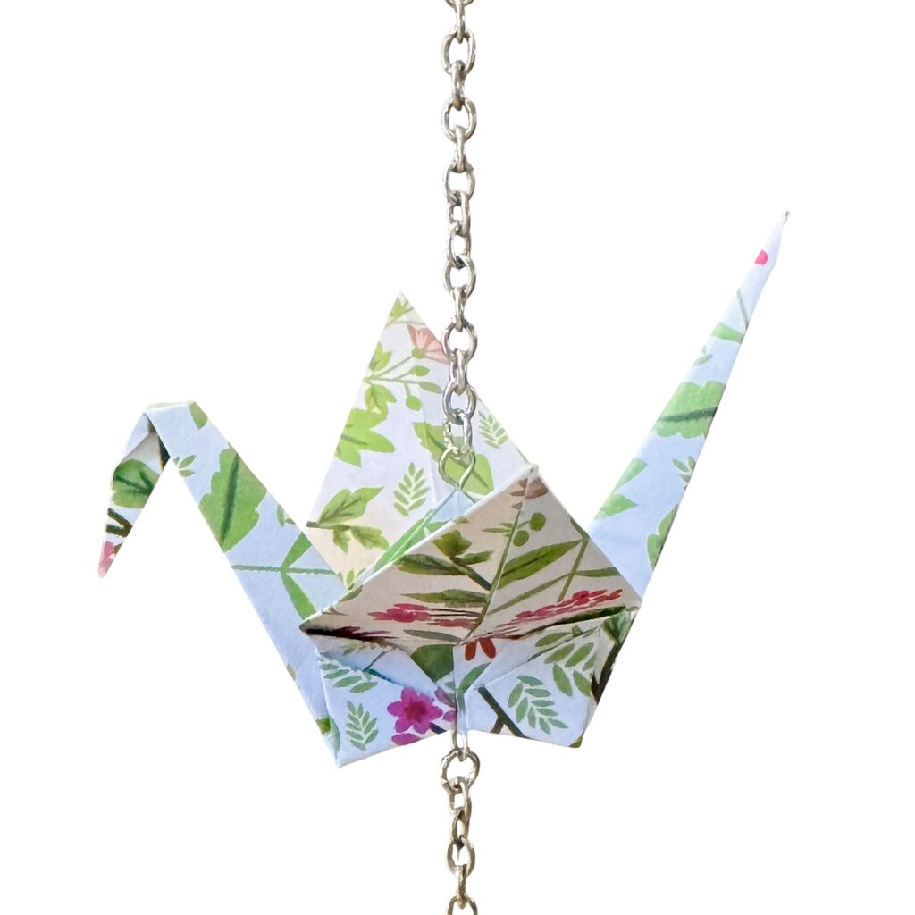 Unique ornament made with origami paper crane, beads, and salvaged jewelry. For decorative use only. Handcrafted in Laconia, NH.