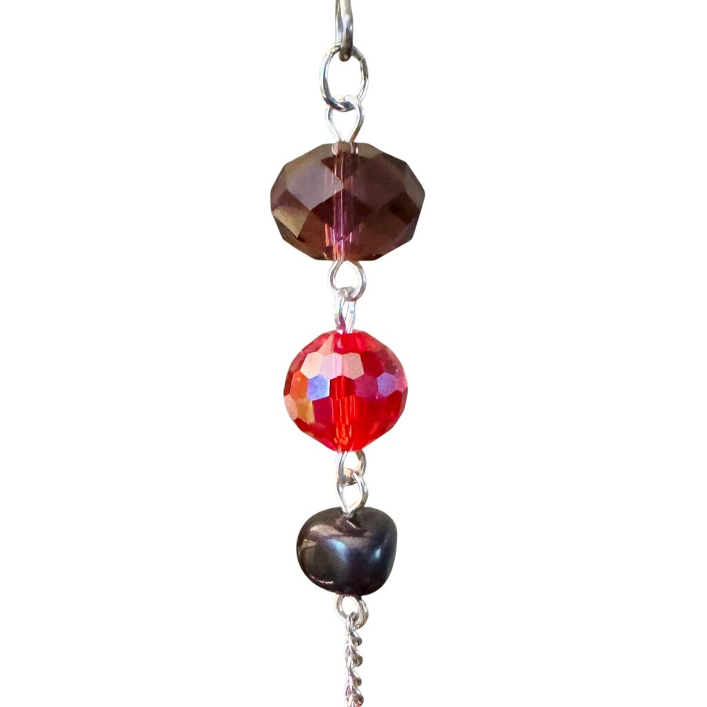 Unique ornament made with origami paper crane, beads, and salvaged jewelry. For decorative use only. Handcrafted in Laconia, NH.