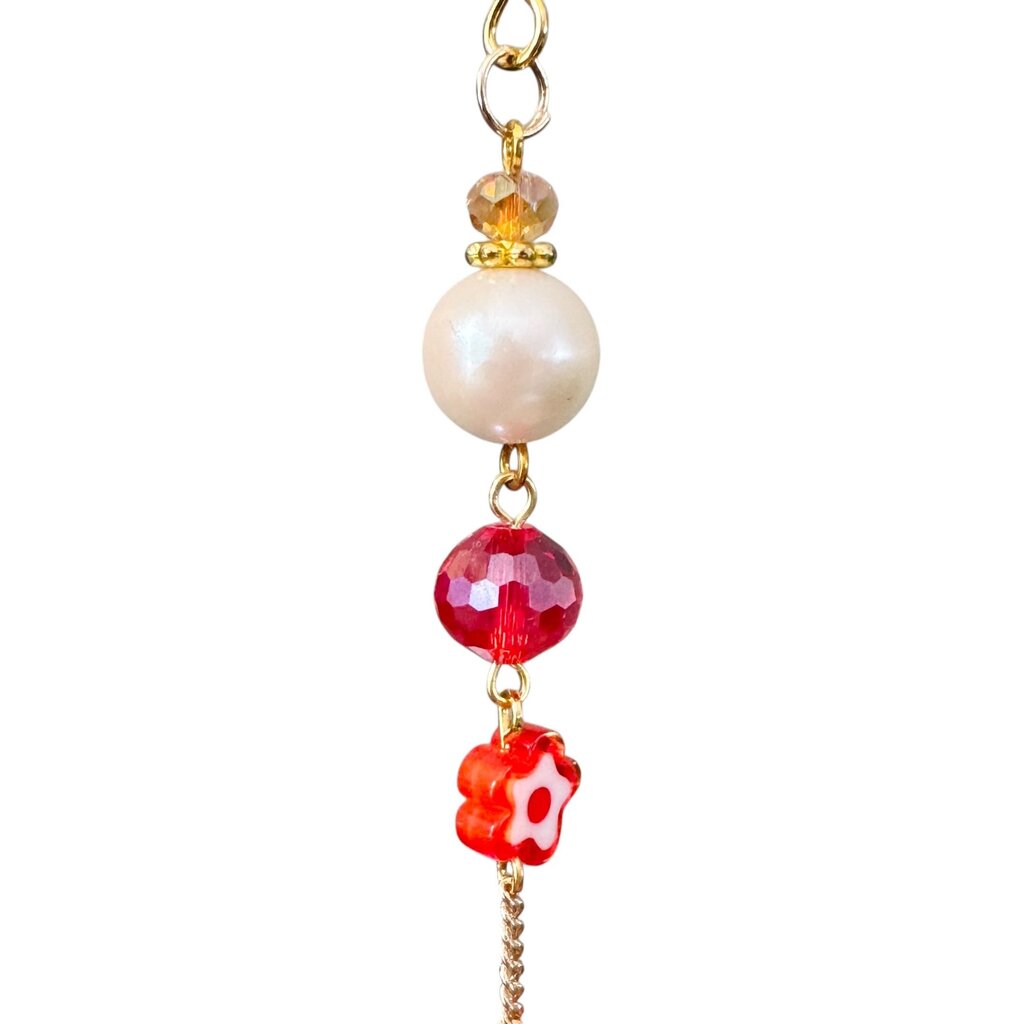 One-of-a-kind ornament made with an origami paper crane, beads, and salvaged jewelry. Handcrafted in Laconia, NH.
