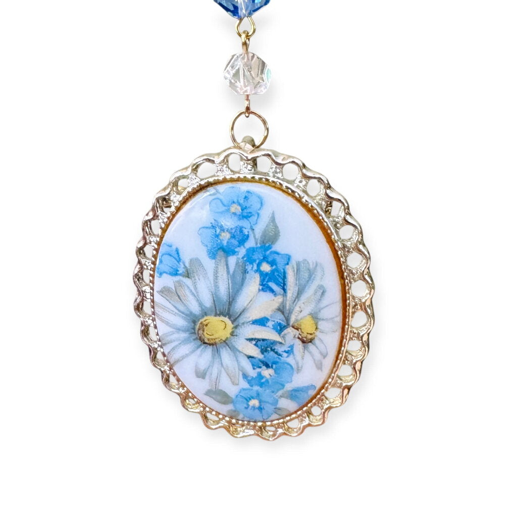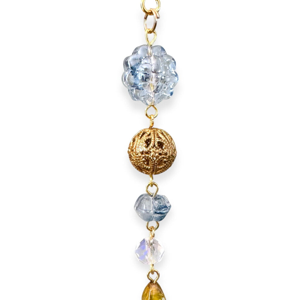 One-of-a-kind ornament made with folded origami, beads, and repurposed jewelry. Each ornament uses a mix of new and salvaged pieces....