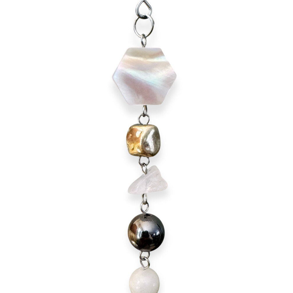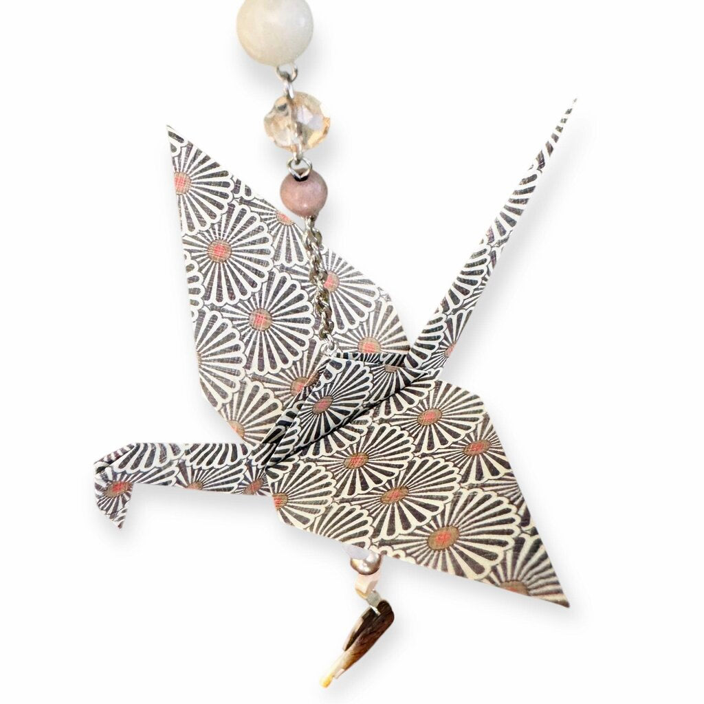 One-of-a-kind ornament made with folded origami, beads, and repurposed jewelry. Each ornament uses a mix of new and salvaged pieces....
