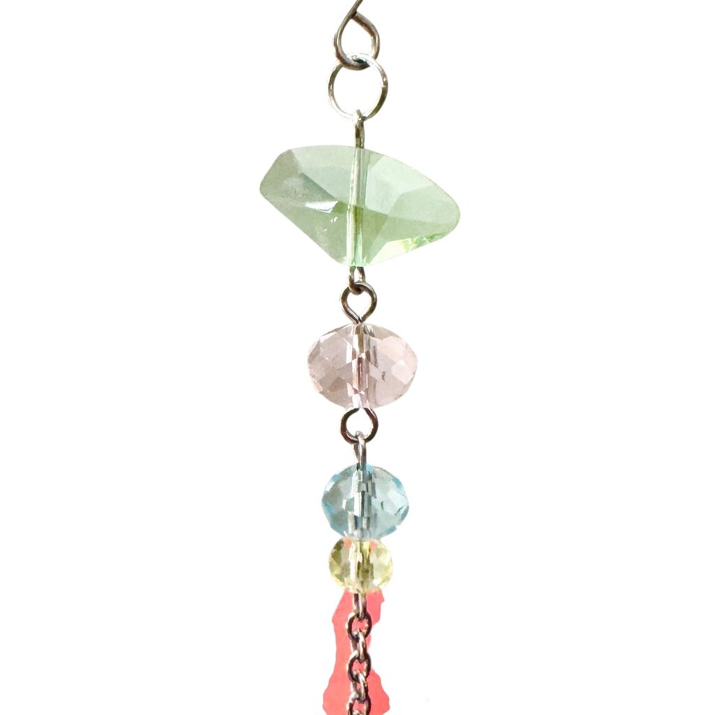 One-of-a-kind ornament made with folded origami, beads, and repurposed jewelry. Each ornament uses a mix of new and salvaged pieces....