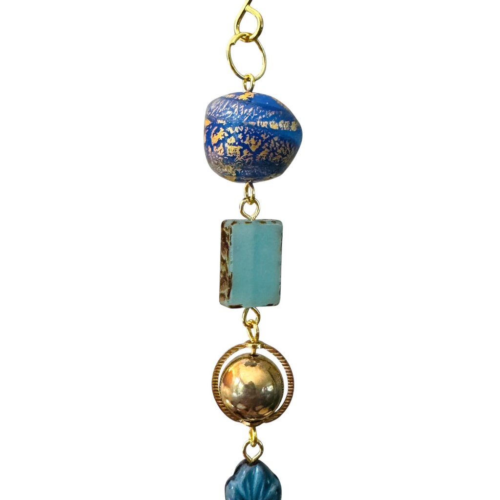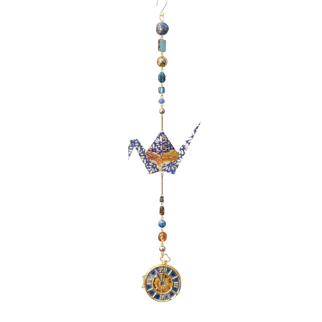 One-of-a-kind ornament made with folded origami, beads, and repurposed jewelry. Each ornament uses a mix of new and salvaged pieces....