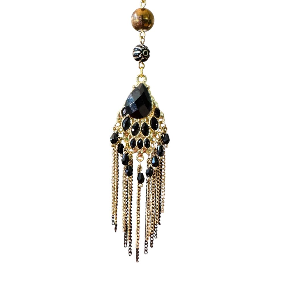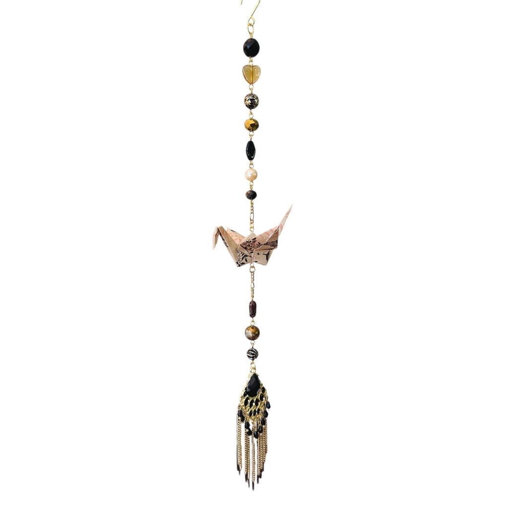 One-of-a-kind ornament made with folded origami, beads, and repurposed jewelry. Each ornament uses a mix of new and salvaged pieces....