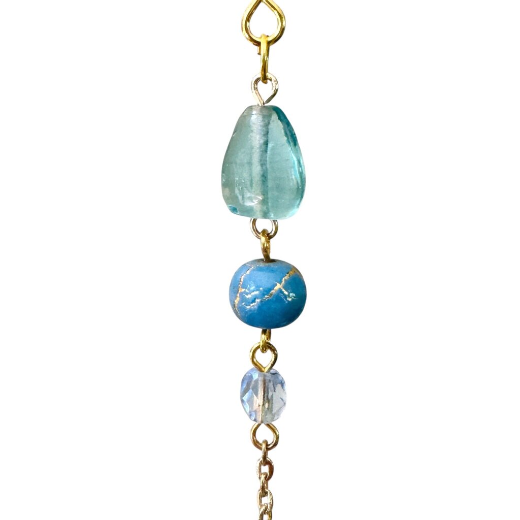 One-of-a-kind ornament made with folded origami, beads, and repurposed jewelry. Each ornament uses a mix of new and salvaged pieces....