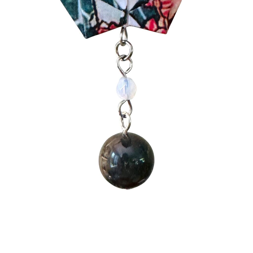 One-of-a-kind ornament made with folded origami, beads, and repurposed jewelry. Each ornament uses a mix of new and salvaged pieces....