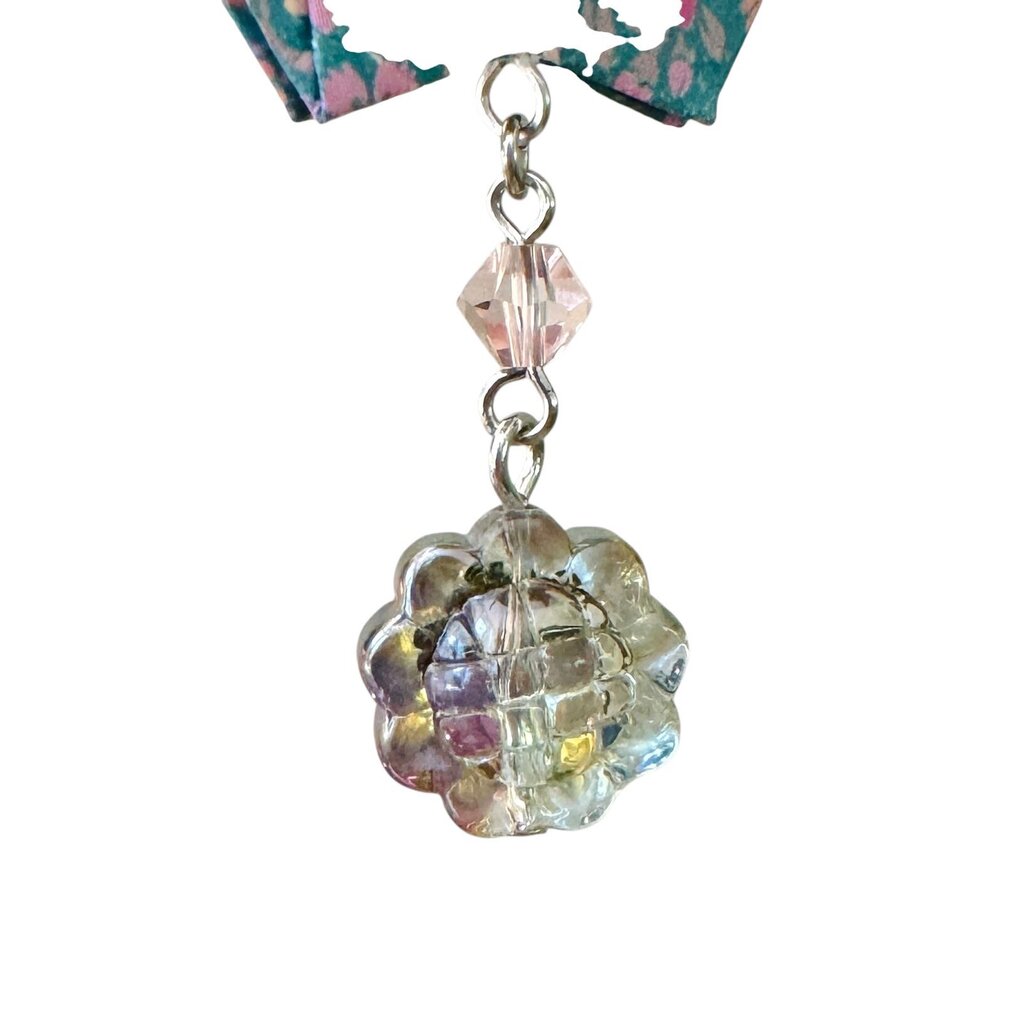 One-of-a-kind ornament made with folded origami, beads, and repurposed jewelry. Each ornament uses a mix of new and salvaged pieces....