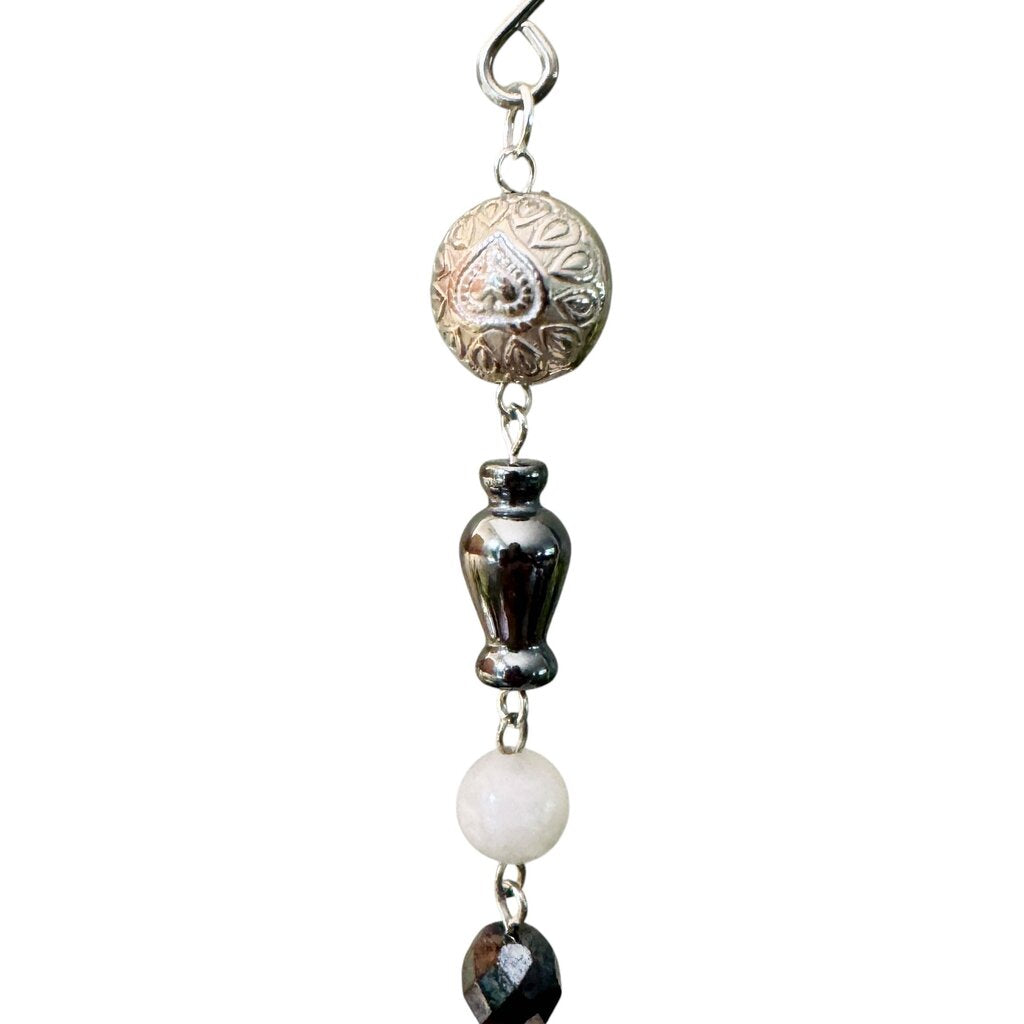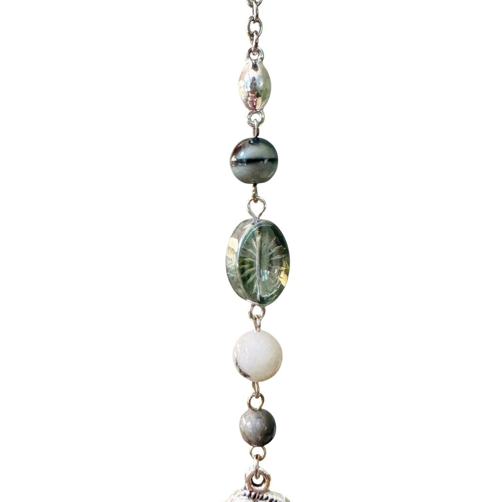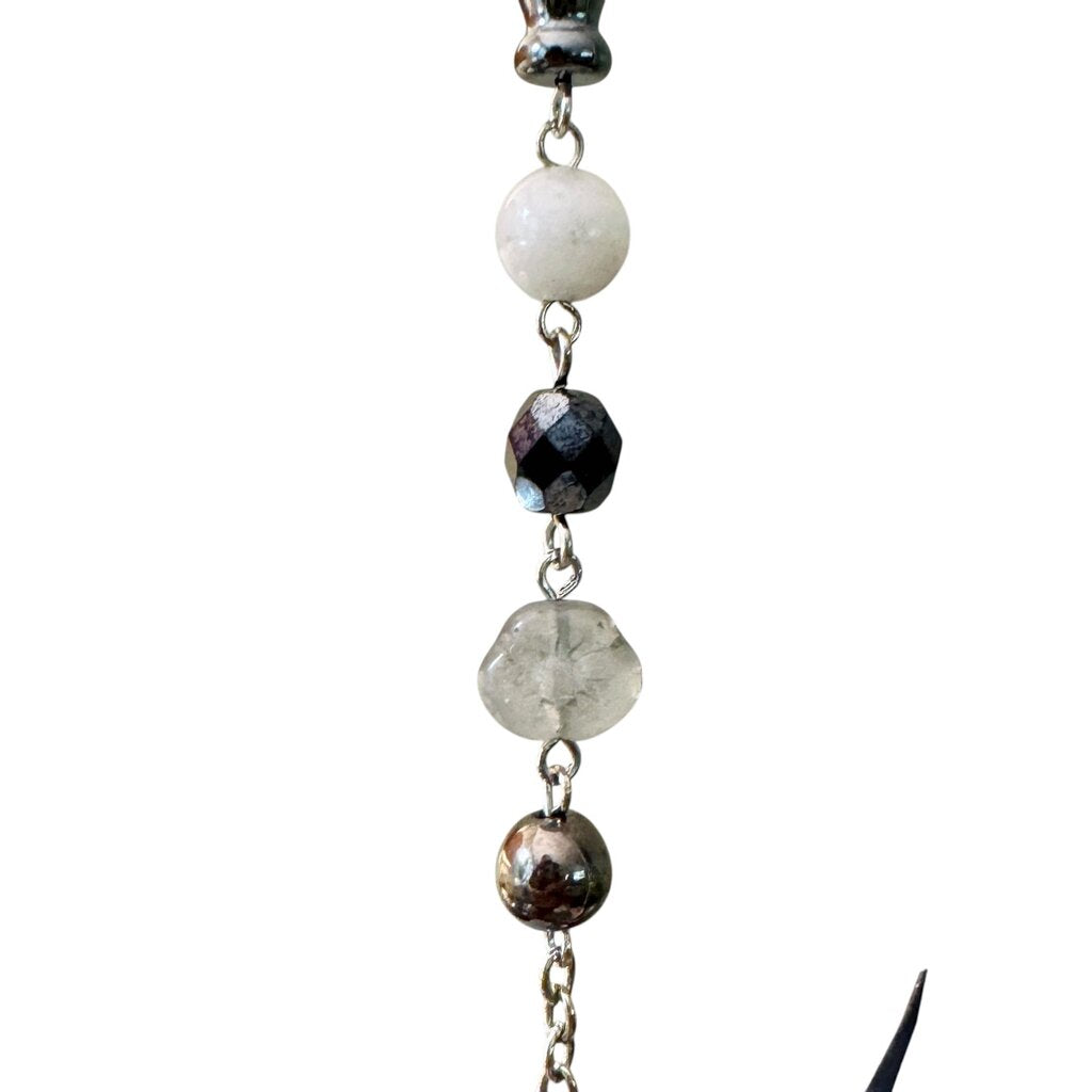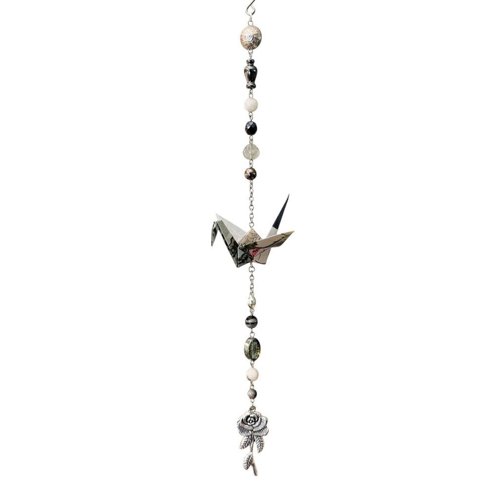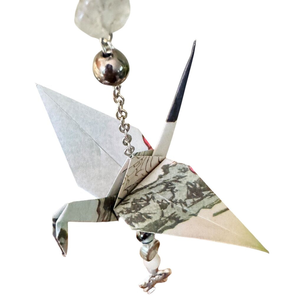 Unique ornament made with origami paper crane, beads, and salvaged jewelry. For decorative use only. Handcrafted in Laconia, NH.