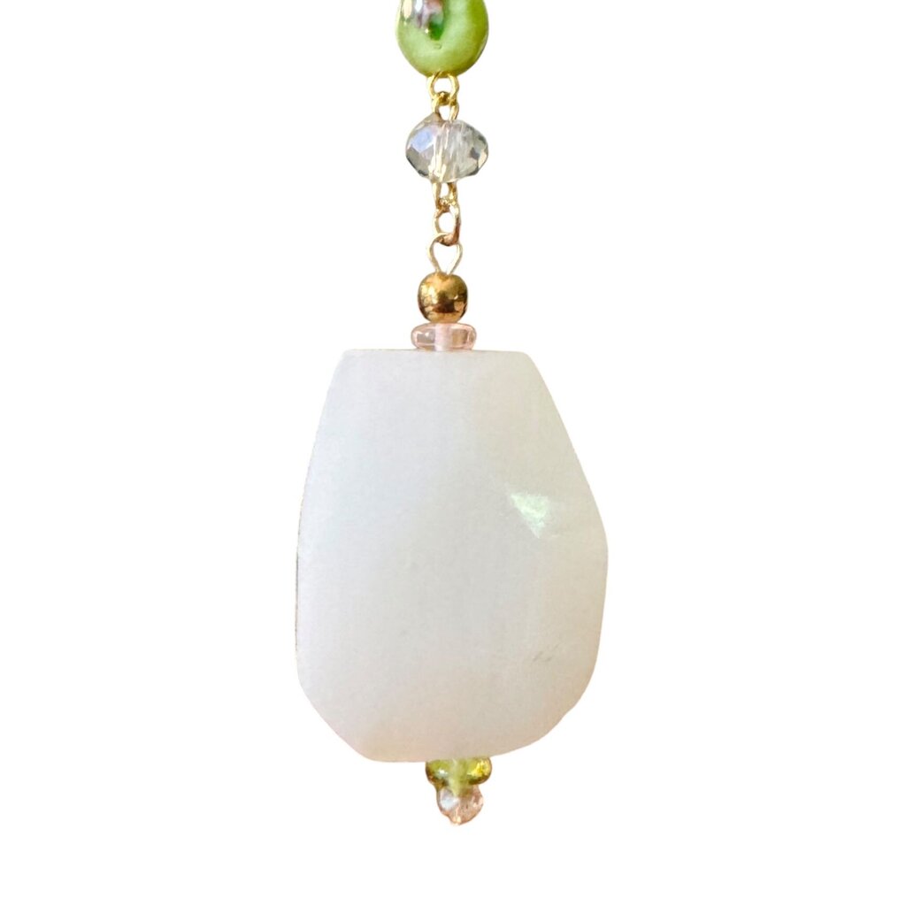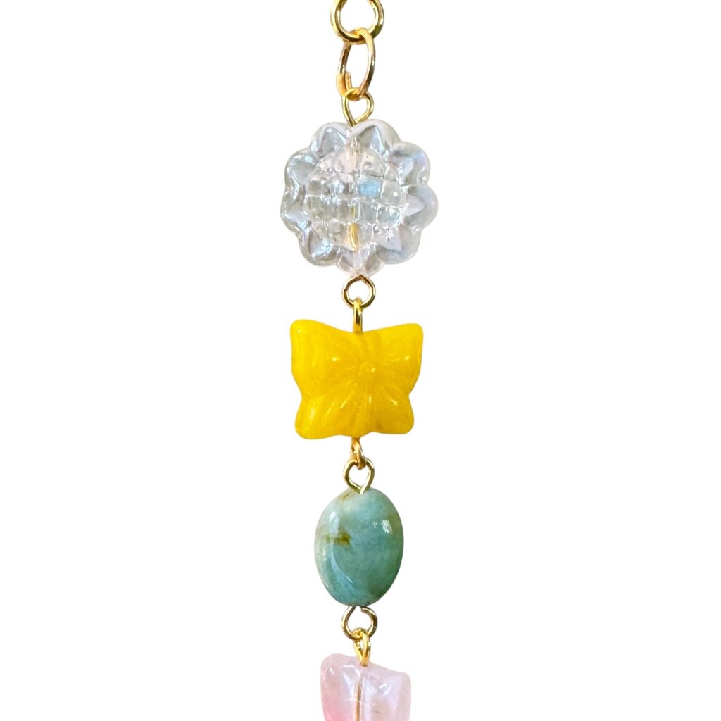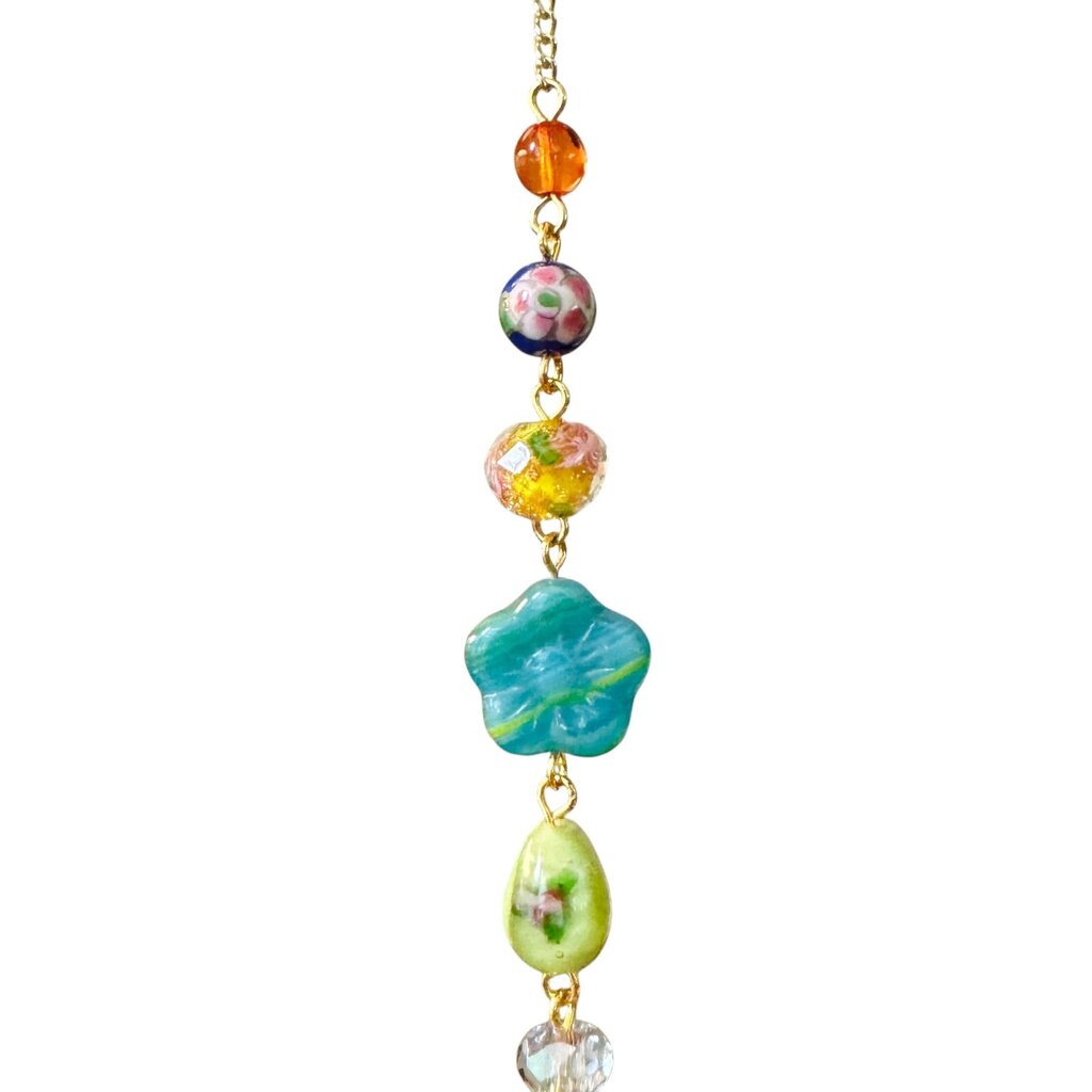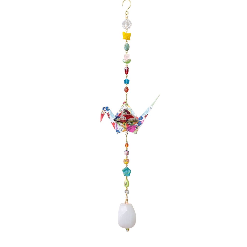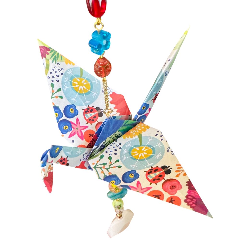 One-of-a-kind ornament made with an origami paper crane, beads, and salvaged jewelry. Handcrafted in Laconia, NH.