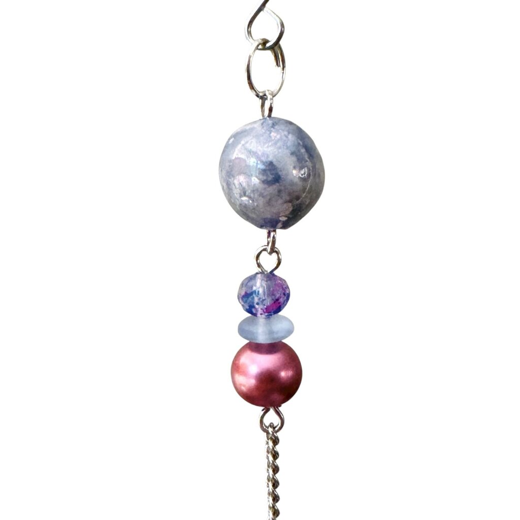 Unique ornament made with origami paper crane, beads, and salvaged jewelry. For decorative use only. Handcrafted in Laconia, NH.