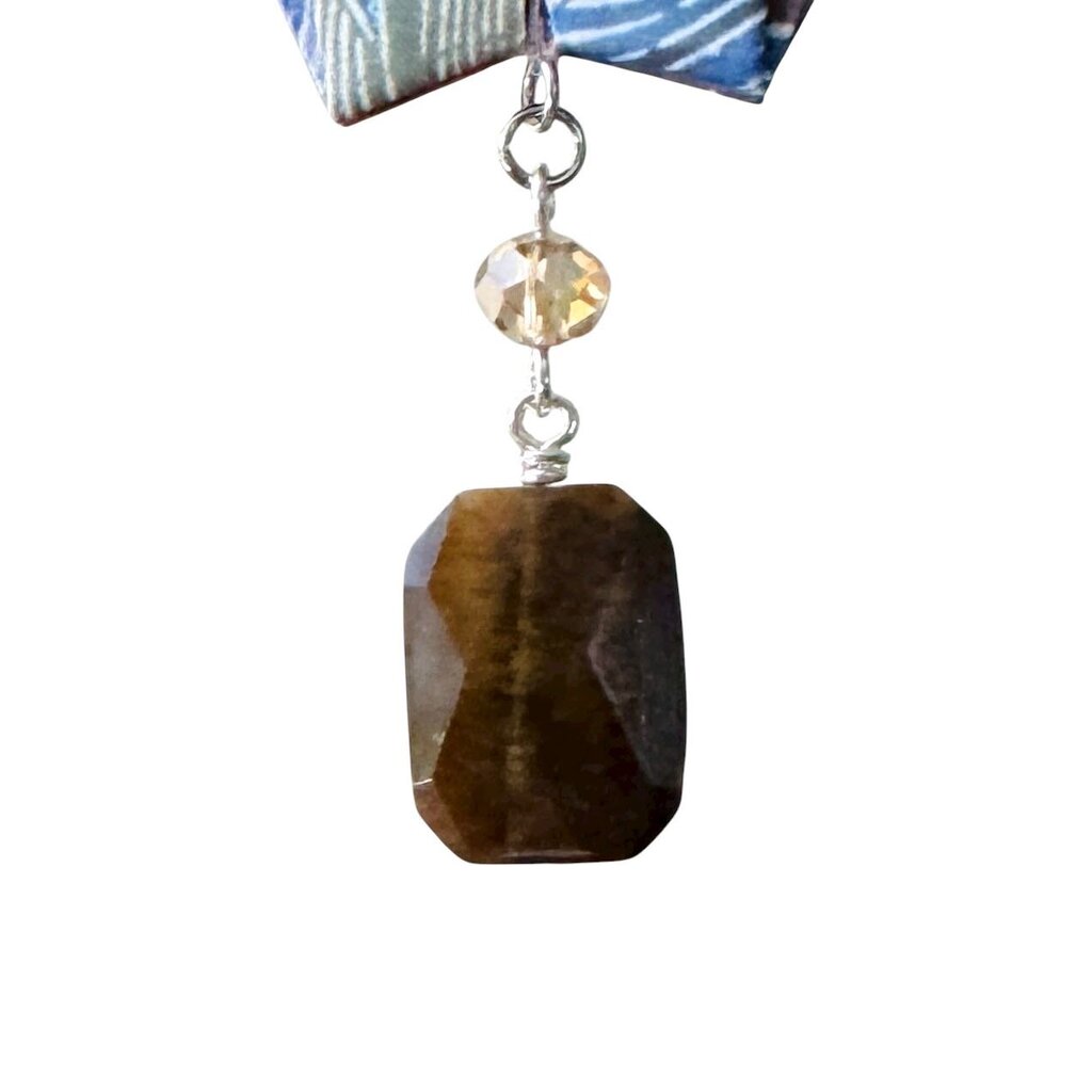 Unique ornament made with origami paper crane, beads, and salvaged jewelry. For decorative use only. Handcrafted in Laconia, NH.