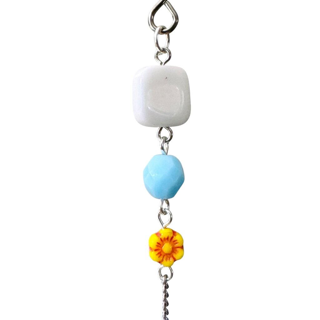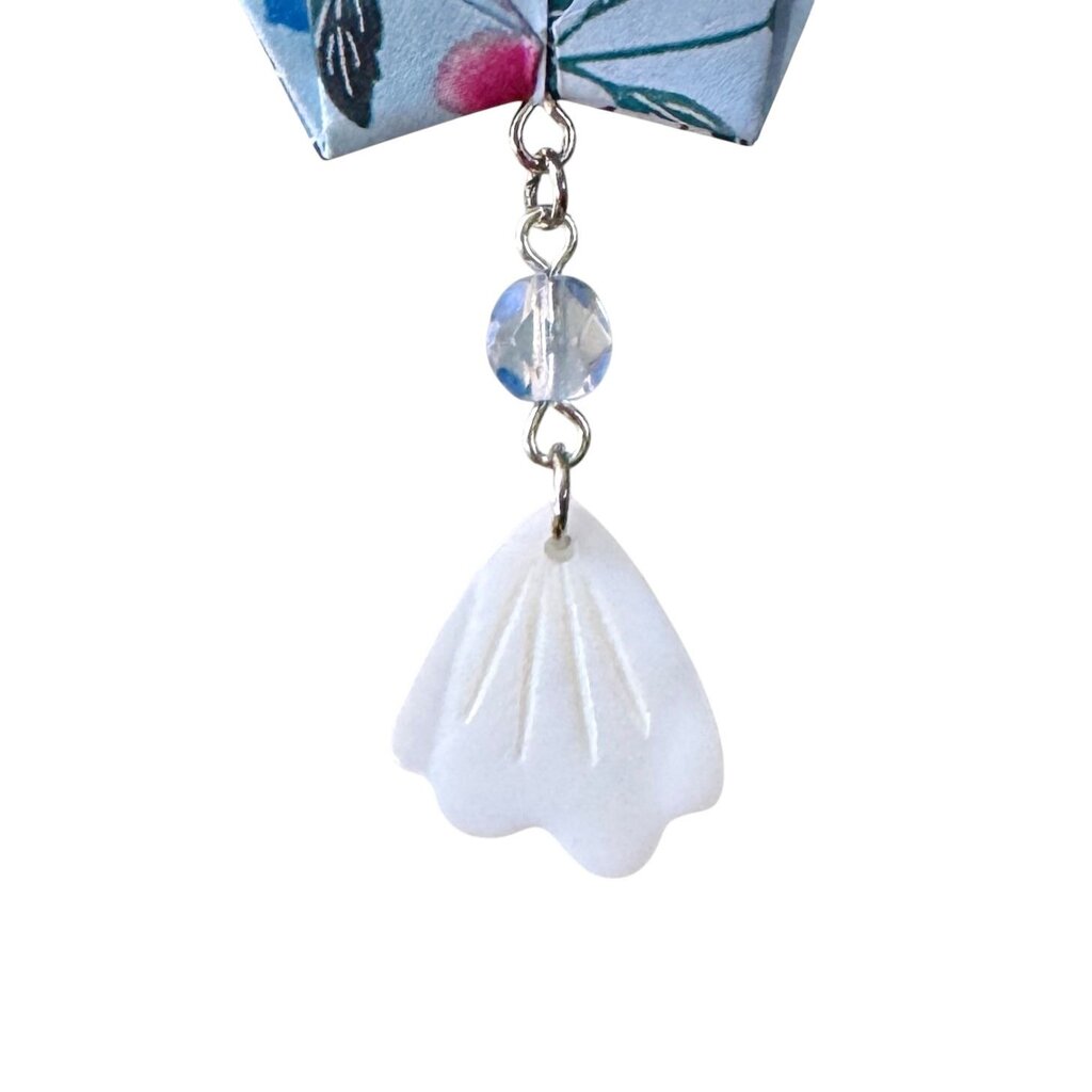 Unique ornament made with origami paper crane, beads, and salvaged jewelry. For decorative use only. Handcrafted in Laconia, NH.