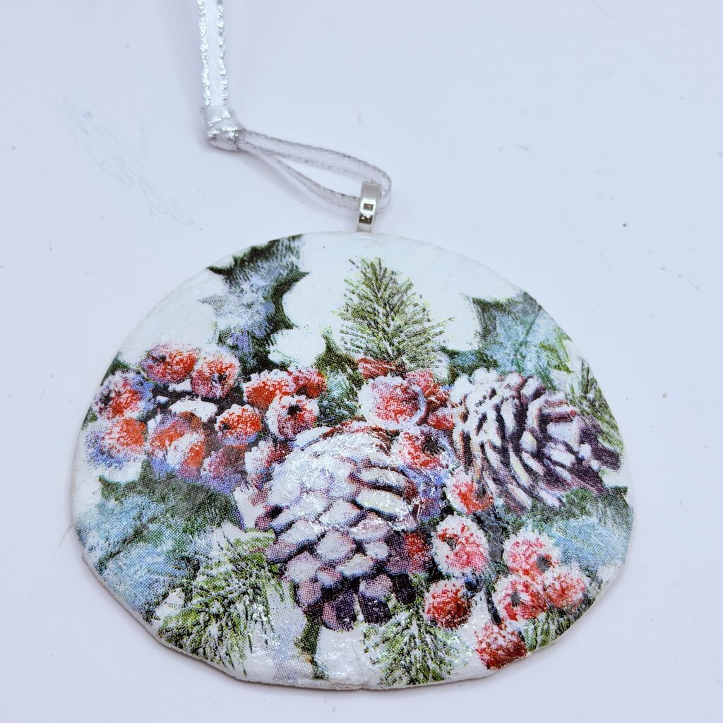 Pine one/Spruce/Holly berries Sand Dollar Ornament (Oregon, 30+ years ago)