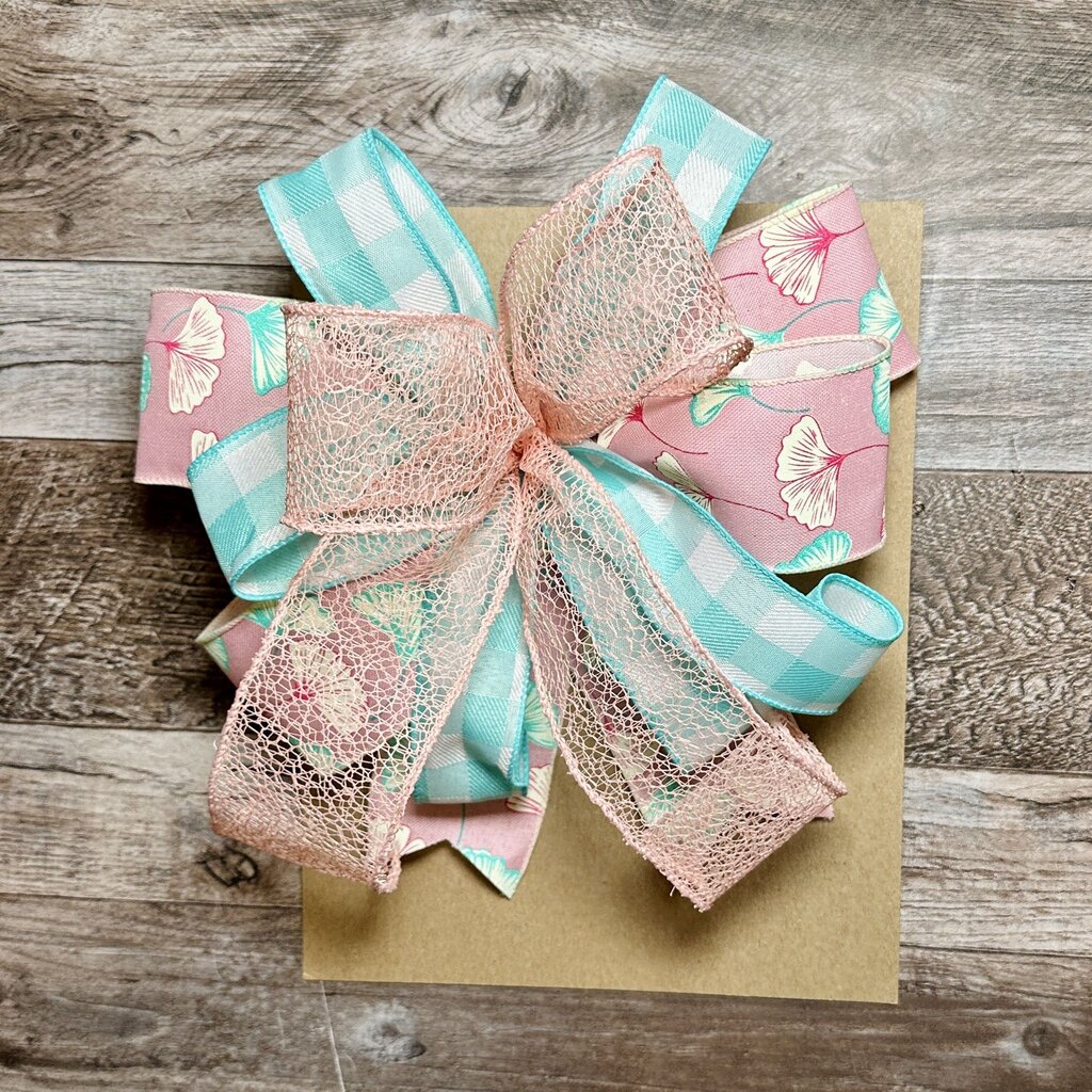 This pink, aqua, and light coral combo makes for one gorgeous bow! Handmade with care, this decorative bow features two...