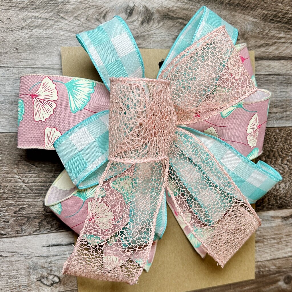 Pink & Aqua Floral Decorative Bow - Spring Wreath, Lantern, Mailbox, Gift Basket, Staircase, Wedding, Shower or Party Decor, Handmade Bow