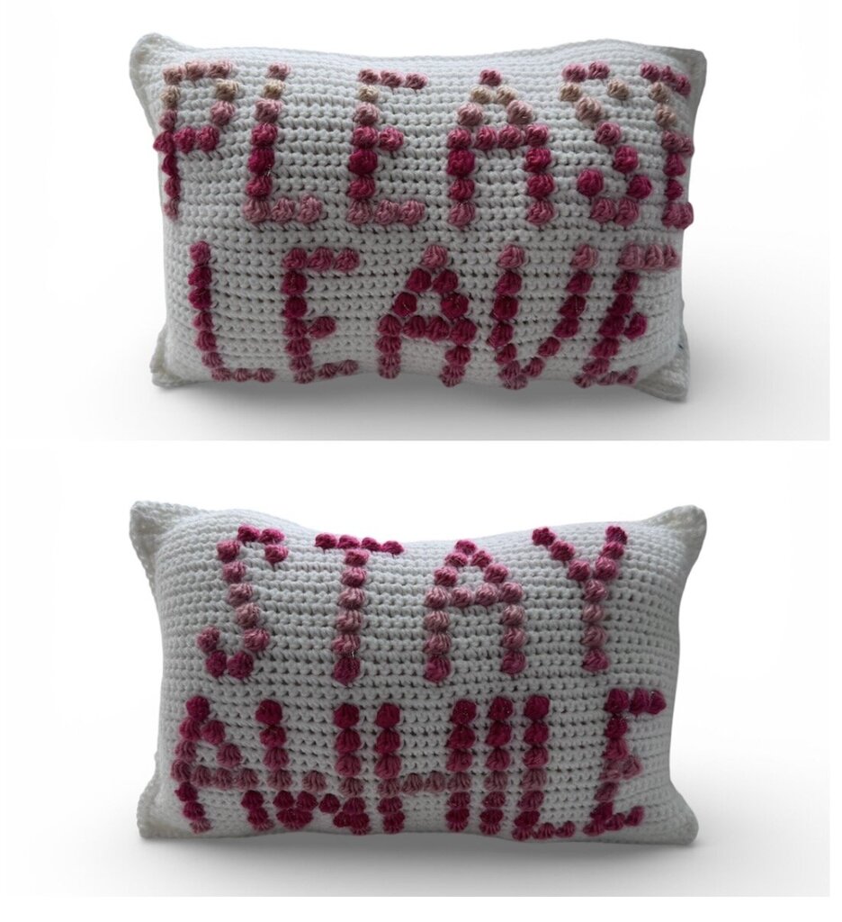 Please Leave - Stay Awhile Throw Pillow Midnight Creations Share Deel Messenger Email Please Leave - Stay Awhile Throw Pillow Midnight Creations Share Deel Messenger Email Product form BEDDING PILLOWS & BLANKETS | SKU: E8JFYT Free pickup in store! Free pickup in store! Size Free pickup in store! 14" X 10" Color Free pickup in store! White with ombre pink lettering Condition Free pickup in store! New $49.00 Quantity Add to cart