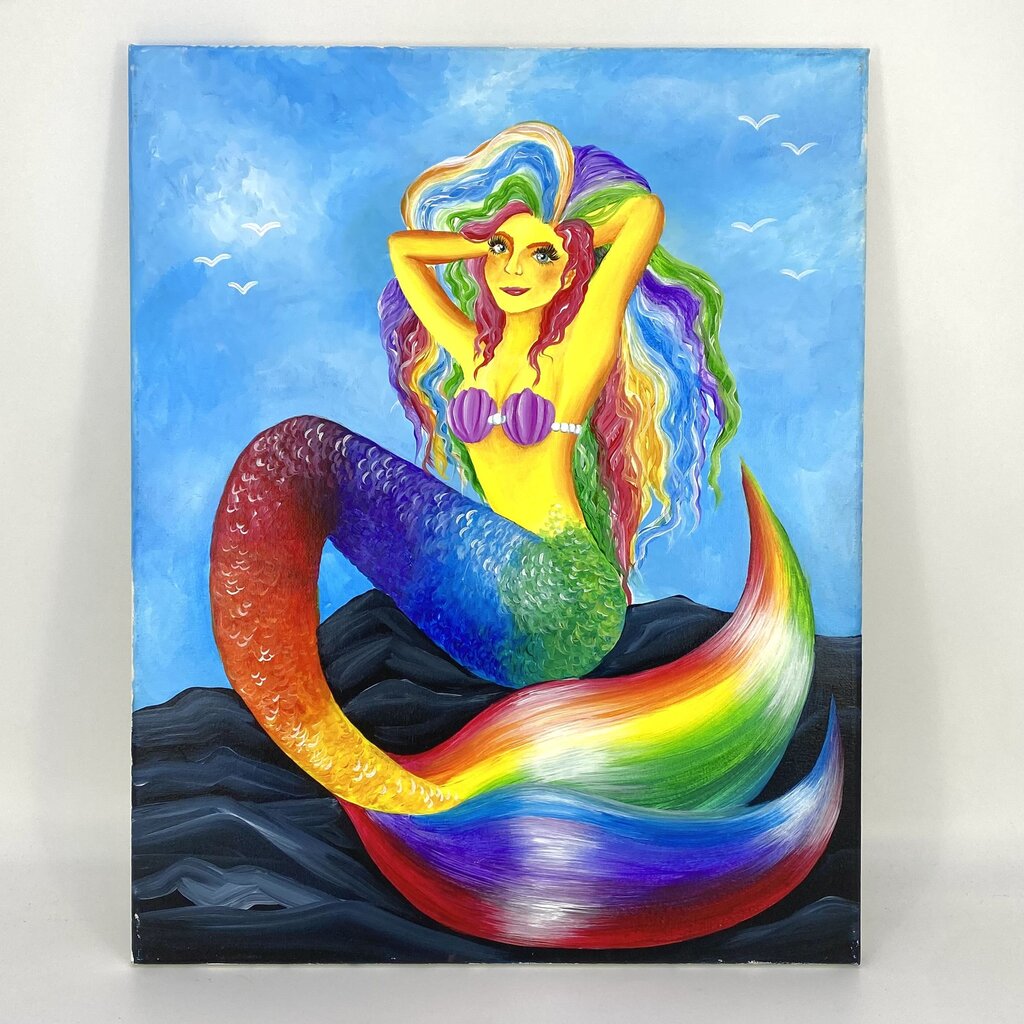 Rainbow mermaid, acrylic painting on canvas, 16x20