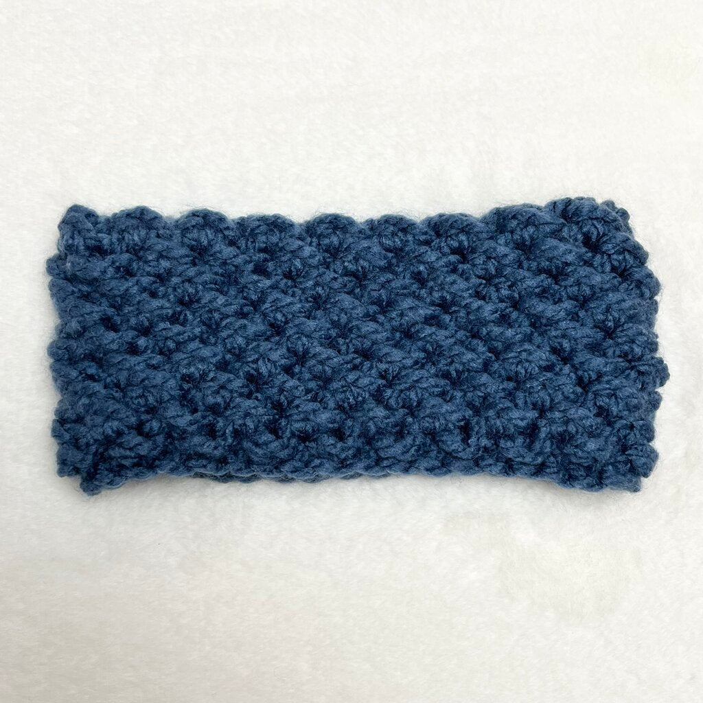 Crochet winter headband/ear warmer made with acrylic yarn. Machine wash gentle. Lay flat or tumble dry low heat.
