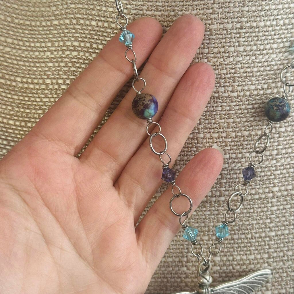 Sea Sediment Jasper & crystal brass dragonfly necklace Creative Therapy Jewelry & Gemstone Hair Accessories Share Deel Messenger Email Low Stock Sea Sediment Jasper & crystal brass dragonfly necklace Creative Therapy Jewelry & Gemstone Hair Accessories Share Deel Messenger Email Product form This item is only available for in-store pickup. NECKLACES Free pickup in store! Free pickup in store! ColorBlue/aqua/purple antique brass Condition New $75.00 Quantity Add to cart