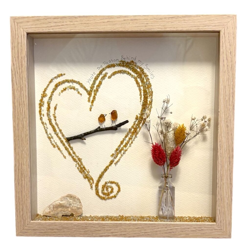 shadowbox, gold glitter heart with 2 glass birds on branch, vase Royal Ave Studios Share Deel Messenger Email shadowbox, gold glitter heart with 2 glass birds on branch, vase Royal Ave Studios Share Deel Messenger Email Product form FRAMED ART | SKU: PQS5KX Free pickup in store! Free pickup in store! Size Free pickup in store! 10 x 10" Color Free pickup in store! light wood frame Condition Free pickup in store! New $44.95 Quantity Add to cart