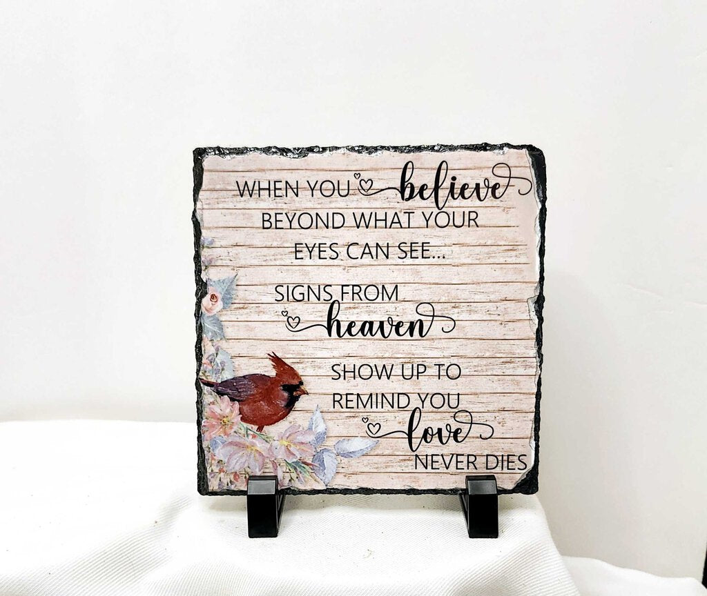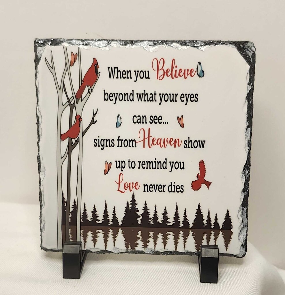 Shelf sitter- "Love never dies" slate