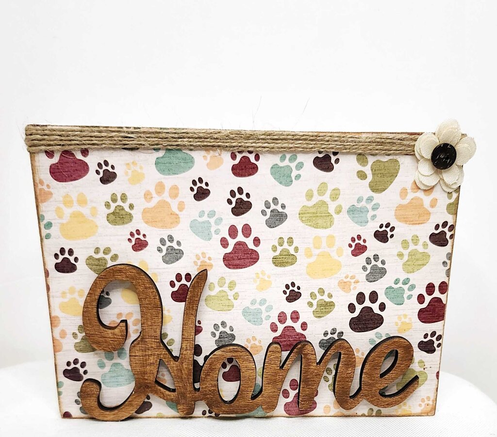 Shelf sitter- Paw prints decoupage (Home)