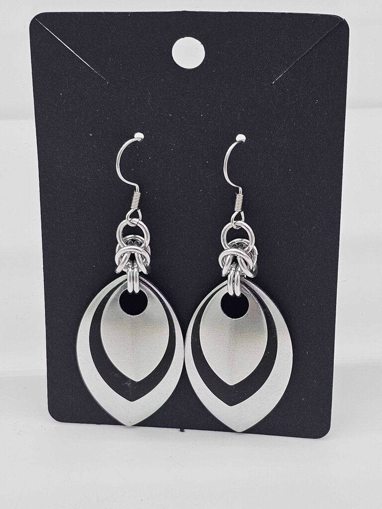 Silver, Black and Silver Scale Earrings, surgical steel ear wires. Looking for different colors? Please email us at graycatmanordesigns@gmail.com and...