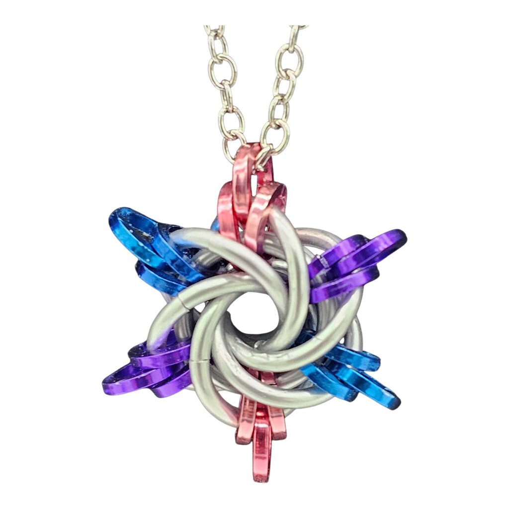 Silver, Purple, Pink, Blue Starry Night Pendant, 18 inch stainless steel chain