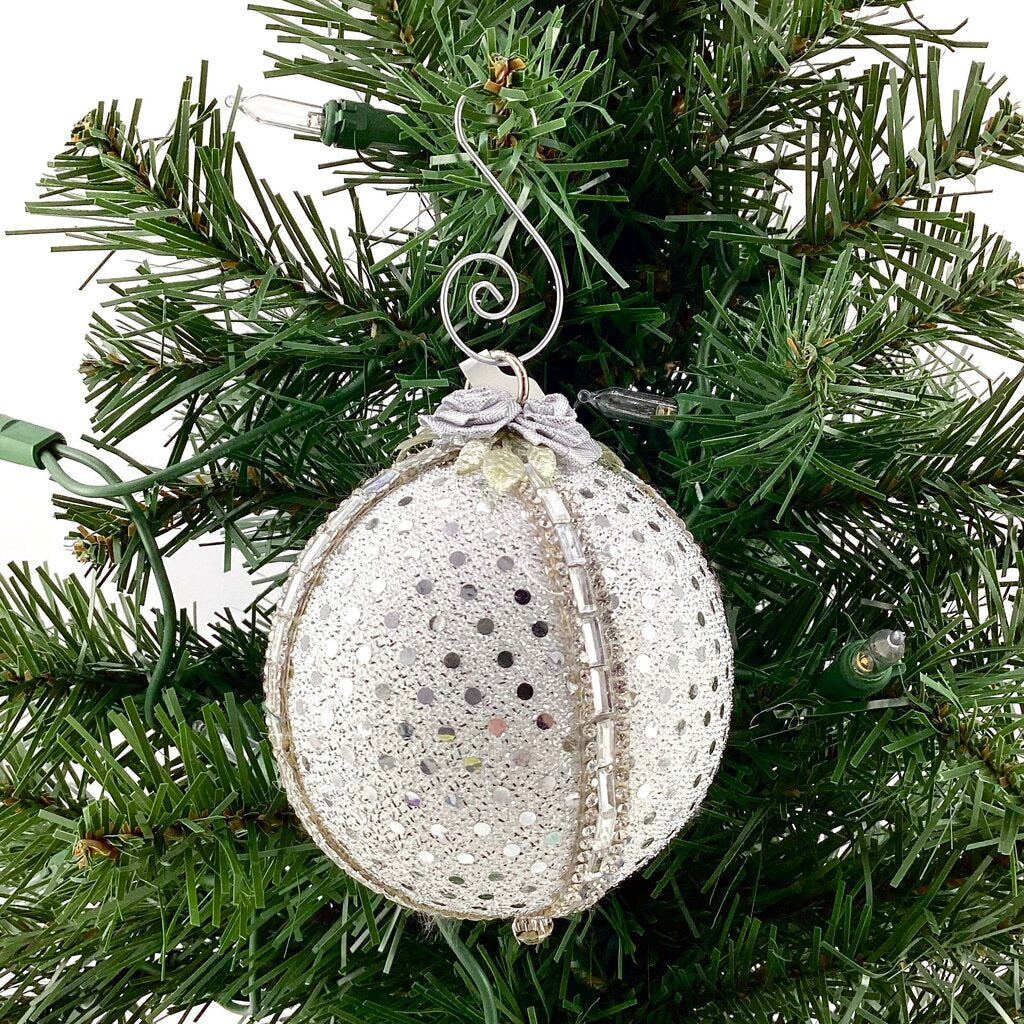 Upcycled Silver Shimmer christmas ornament- shatterproof